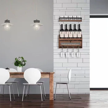 Le meuble range bouteilles mural avec support pour verres est une solution pratique et élégante pour ranger votre collection de vin. Ce meuble compact offre un support pour 5 bouteilles et un casier pour ranger les bouchons.