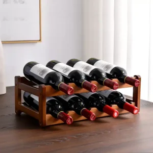 Vous aimez les bouteilles de vin et de spiritueux, mais vous n’avez pas d’endroit pour les ranger ? Le range bouteilles en bois vintage pour 8 bouteilles est la solution idéale pour vous ! Avec sa conception à deux étages en bois de bambou, ce casier à bouteilles est à la fois élégant et pratique. Il peut contenir jusqu’à 8 bouteilles et est parfait pour organiser votre collection de boissons préférées.